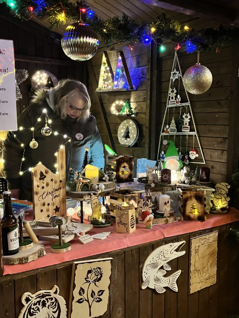 Vom 07.12.-10.12.23 haben wir in Georgsmarienhütte einen Stand auf dem Weihnachtsmarkt gehabt . Wir haben selbstgemachte Holzdekoration, Marmeladen, Papiersterne, Strickwaren und Plätzchen verkauft.